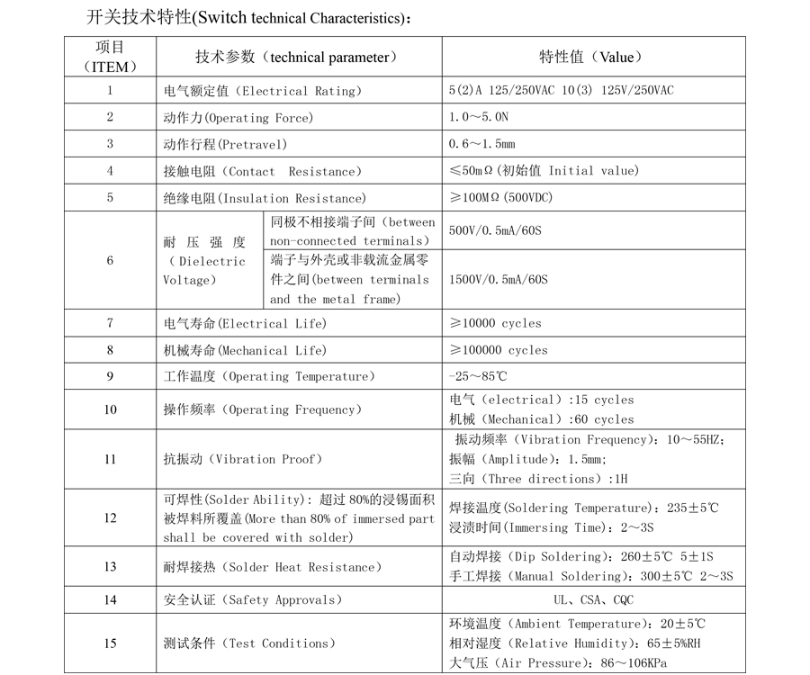 | 4 | แรงปฏิบัติการ:70±20gf |