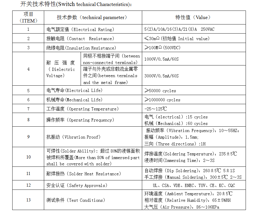 | 11 | บัดกรีต้านทานความร้อน | การบัดกรีแบบจุ่ม: 260 ± 5 ℃ 5 ± 1 S การบัดกรีด้วยตนเอง: 300 ± 5 ℃ 2 ~ 3S |